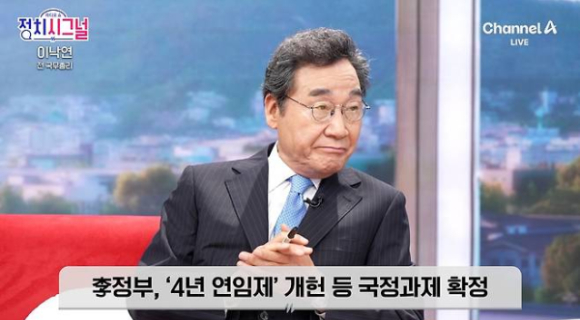↑↑ 대통령 4년 연임제 개헌 과련 "이재명 대통령이 '저는 하루도 더도 덜도 않겠습니다'라는 식의 선언을 해줘야 불확실성이 제거된다"고 말하고 있는 이낙연 전 국무총리 (사진 = 채널A 방영 캡처)