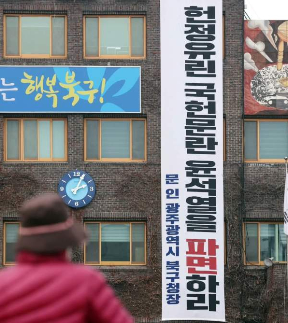 문인 구청장은 2025.03.10. 본인이 재직하고 있는 광주북구청 청사 외벽에 ‘윤석열 파면’을 촉구하는 ‘헌정유린 국헌문란 윤석열을 파면하라’ 현수막을 걸어 논란됐다.