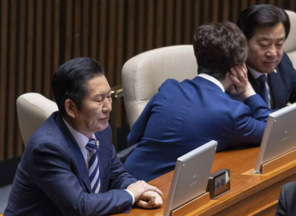 ↑↑ 정청래 더불어민주당 대표(왼쪽)가 2일 국회에서 열린 2월 임시회 개회식에 참석해 있다. 이날 오전 조국혁신당과의 합당 제의를 두고 격하게 갈등을 표출한 가운데 지긋이 눈을 감고 있다.