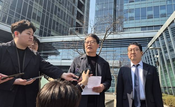 ↑↑ 지난해 4월3일 김유열 전 EBS 사장이 방송통신위원회의 EBS 사장 이사 임명 처분에 대한 집행정지 변론에 앞서 서울행정법원 앞에서 입장문을 발표하고 있다.